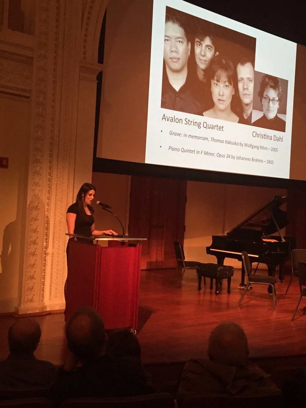 I have spoken at concerts for the Chicago Symphony, Avalon Strings Quartet, and at corporate events for Google, Bank of America, Merrill Lynch and the Chicago Bulls.